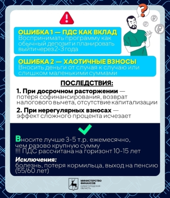 Но у любого финансового инструмента есть нюансы. Чтобы ПДС приносила выгоду, а не разочарование, важно не совершать типичных ошибок