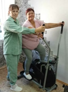 В отделении дневного пребывания с гражданами пожилого возраста и инвалидами инструктором по трудовой терапии проводятся занятия на специальных тренажерах, которые направлены на развитие верхних и нижних конечностей, на укрепление мышц спины, рук, разработку суставов ног, эластичность соединительных тканей, дарят им здоровье и долголетие, помогают бороться с депрессией и улучшают настроение.