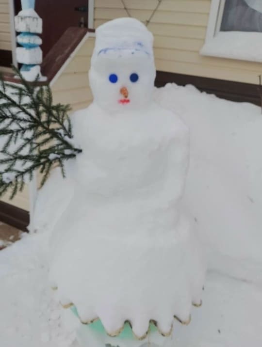 Среди социальных работников есть настоящие мастерицы, которые из снега делают очень красивые фигуры. Так, Вохминцева Елена Ивановна, проживающая в деревне Двоеглазово, ежегодно около дома делает снежные композиции с символом года, чем радует своих деревенских жителей. В 2026 году результатом ее творения стала огненная лошадь.